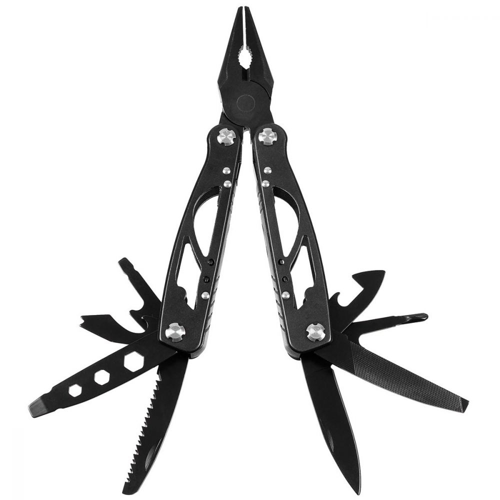 Coltello multifunzione a 9 pezzi con lama di circa 5,5 cm Sega, pinze a doppio denti con taglio laterale Lima di legno/metallo con righello (in pollici)