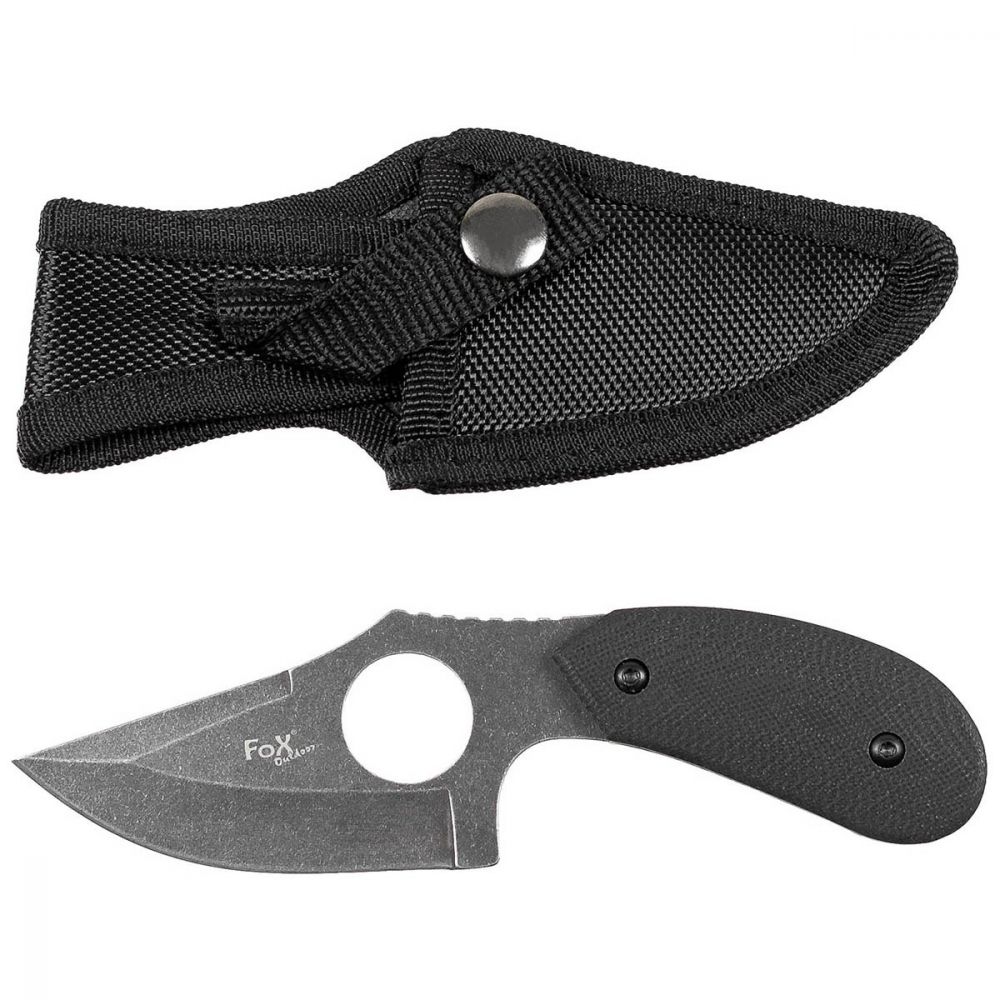 Coltello, con foro per dita, con fodero